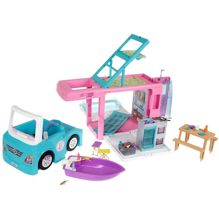 Quando as meninas chegam na estrada com o Trailer Barbie 3 em 1, suas histórias podem ir onde a imaginação as levarem! Muitas transformações e surpresas ocultas tornam a brincadeira emocionante; Com 50 peças, as oportunidades de contar histórias são infinitas. É fácil contar histórias de viagens e aventuras ao ar livre com a Barbie Camper 3 em 1, porque, com a Barbie, você pode ser o que quiser! Adicione ainda mais variedade ao conjunto, expandindo o mundo da Barbie.