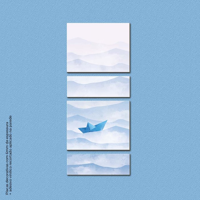 Barquinho de Papel - Quadro ou Placa Decorativa com 4 Peças É Decoração Quadros e Placas Decorativas