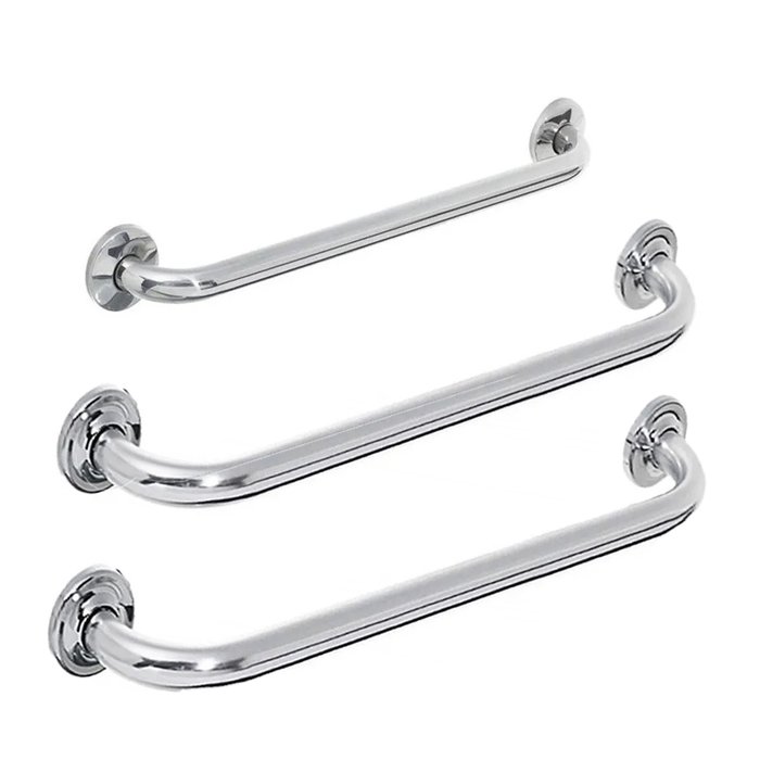 Barra Alça De Apoio Inox Kit 2 Und 60cm e 1 40cm Suporte Idoso Cadeirante Deficientes