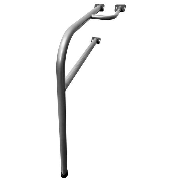 A barra de apoio foi desenvolvida com os melhores materiais do mercado, sendo fabricada em aço carbono extra resistente, já o acabamento fica por conta da pintura epóxi com tratamento antioxidante que traz uma cor mais viva para peça. Conta também com ponteiras plásticas, trazendo maior aderência, evitando que ela escorregue ou danifique seu piso.