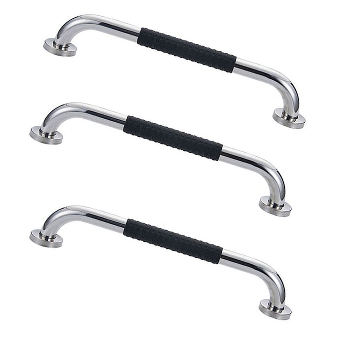 Barra de Apoio 30cm Inox Suporte Antiderrapante Kit 3 Unidades Banheiro Box Gestante Idoso Cadeirant