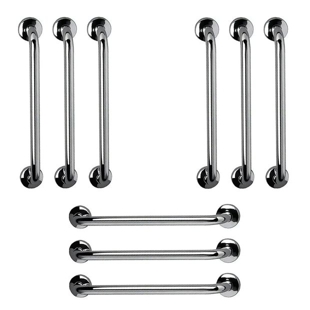 Barra de Apoio 60cm Aço Inox Kit 9 Unidades Banheiro Box Suporte Idoso Deficiente Cadeirante Seguran