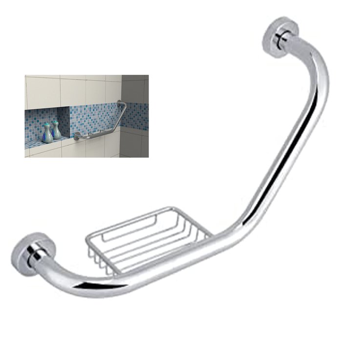Barra de Apoio Alça Inox Acessibilidade Idoso Cadeirante Saboneteira Banheiro Box Vaso Chuveiro