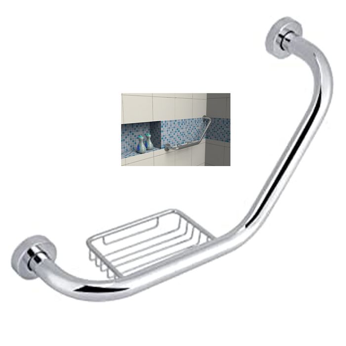 Barra de Apoio Alça Inox Cadeirante Idoso Corrimao Acessibilidade Angular Box Banheiro Saboneteira