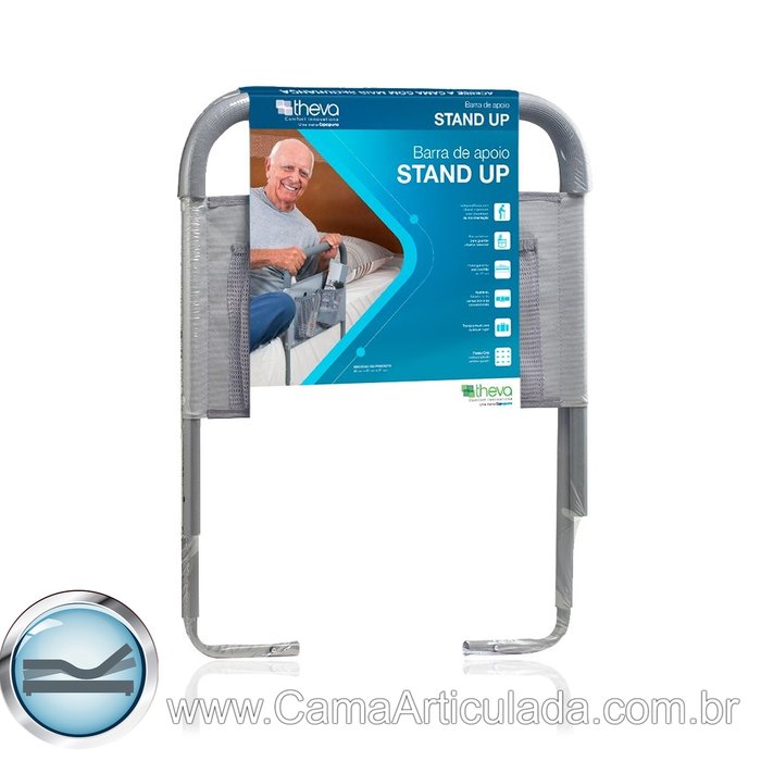 Barra de Apoio Lateral para Cama Stand Up A Barra de Apoio Stand Up da Cama Articulada Saga Brasil auxilia idosos e pessoas no pós cirúrgico ou com dificuldade para se levantar da cama, adaptando-se à camas box e as convencionais. A barra de apoio lateral traz mais segurança e independência, auxiliando na Prevenção de Quedas, tanto em caso de crianças, quanto de adultos em geral, sendo prática (porque não exige instalação complicada) e também portátil, podendo ser levada para qualquer lugar em que a pessoa necessite do apoio. Características - RESISTENTE: Resistente até 140kg para movimento de alavanca. - AJUSTÁVEL: Adapta-se à camas box e as convencionais. - PORTÁTIL: Transportável para qualquer lugar. - SEGURA: Possui Grip emborrachado antiderrapante. - Não exige Instalação: é colocada sob o Colchão. - Possui bolsos para guardar objetos pessoais. - Não precisa de ferramentas para montagem Especificações: - Contém 01 Unidade - Dimensões Altura: 45cm - Largura: 51cm - Profundidade: 61cm Composição: - Estrutura: Tubo de Aço carbono com pintura epóxi - Tecido ( Bolso): 80% PVC / 20% Poliester / Tela: 100% Poliéster Garantia 3 meses contra defeito de fabricação Informações Complementares: Não recomendado o uso como grade de proteção Não utilizar em camas ajustáveis Não exponha a barra de apoio Stand up ao sol sob o risco de ressecamento. *O fabricante poderá realizar alterações no produto sem aviso prévio