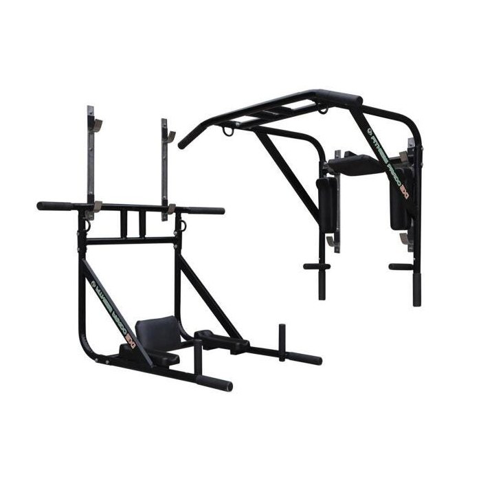 Agora é possível com a fitness prado você pode ter 4 equipamentos em 1 só graças a 2 suportes que são fixados na parede com parafusos parabolts. Os suportes possibilita que você encaixe-o o equipamento na posição desejada sem parafusar nenhum parafuso, facilitando assim a mudança de equipamento com muita facilidade, e possibilitando diversos exercícios.