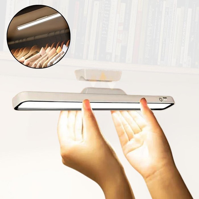 Controle: botão on/off para alternar entre as 3 tonalidades e ajustar a luminosidade. Instalação: base magnética com tira dupla face para fácil fixação.