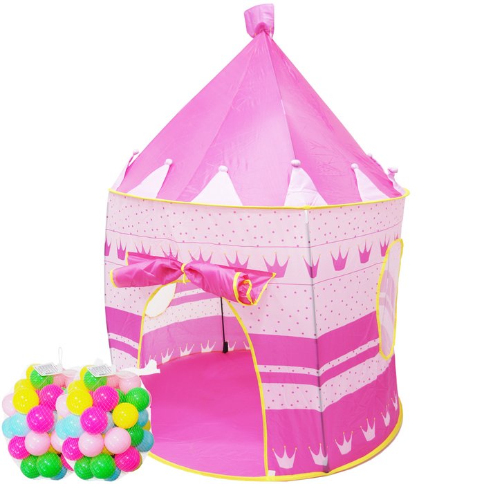 Barraca Infantil Toca Dobrável Castelo 100 Bolinhas Menina Cabana Tenda Rosa Brinqway BW-068RS