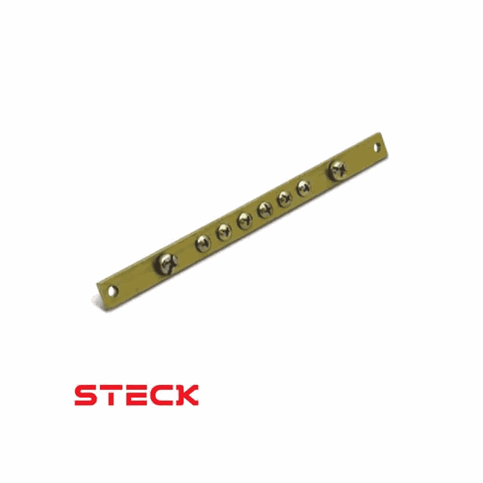 montagem dos quadros pelos eletricistas, permitindo aos profissionais realizar a distribuição dos condutores de maneira prática, rápida e segura. Possibilita melhor organização dos condutores dentro do quadro e dispensa o uso de emendas. Disponíveis na cor verde para distribuição de condutores de proteção (terra) e na cor azul para os condutores neutro. Modelos disponíveis para fixação nos quadros de distribuição Steck e fixação em trilho DIN.