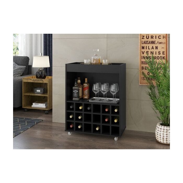 Barzinho Aparador com Adega Leblon Preto Acetinado
