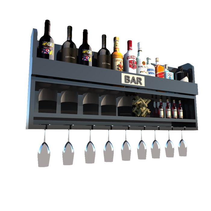 Barzinho Bar Adega de Parede MDF Porta Copos Porta Taças MDF Preto Fosco