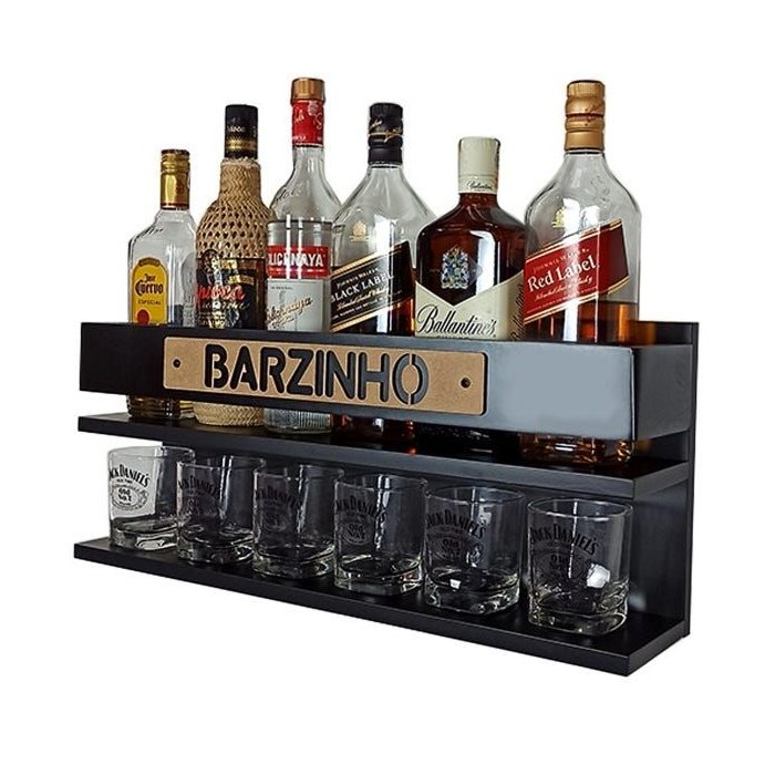 Barzinho Bar de Parede Mdf Decoração Linha Premium - Barzinho - 60 X 26 Preto Fosco