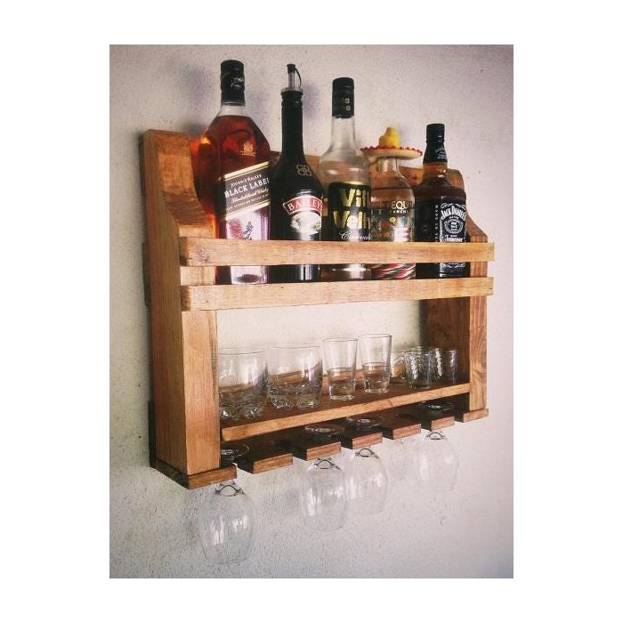 Barzinho de Parede Madeira Rústico Suporte Taças e Copos
