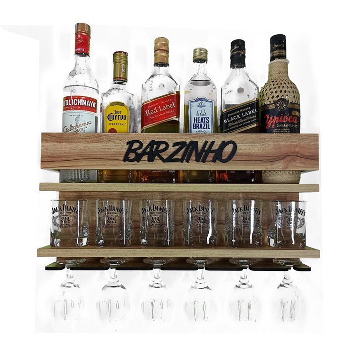 Que presente exclusivo para seu amigo(a), pai, mãe, namorado(a), familiares, etc., em???Se você está à procura de algo EXCLUSIVO, DIFERENCIADO, BONITO e com acabamento de PRIMEIRA para dar de presente ou para você mesmo acabou de encontrar. Impressione á todos deixando suas bebidas bem visíveis e organizadas com o nosso BARZINHO de PAREDE. Esse barzinho ocupa pouquíssimo espaço em seu ambiente, porém chama muito a atenção de quem o vê, justamente por ser um produto diferenciado dos demais existentes no mercado. Não Perca Tempo, peça já seu BARZINHO! Principais Características: • Feito 100% em MDF 15mm Bilaminado• Capacidade Aproximada para 6 Garrafas + 6 Copos + 6 Taças• Dimensões: 54cm de largura x 28cm de altura x 13cm de profundidade Acompanha parafusos e buchas para fixação. Indicações de Uso: PUB’sHome BarVarandas e Sacadas com temática GourmetCozinhasSalas em GeralChurrasqueiras Obs: Imagem Meramente Ilustrativa, Copos, Garrafas e Demais Acessórios Não Acompanham o Produto