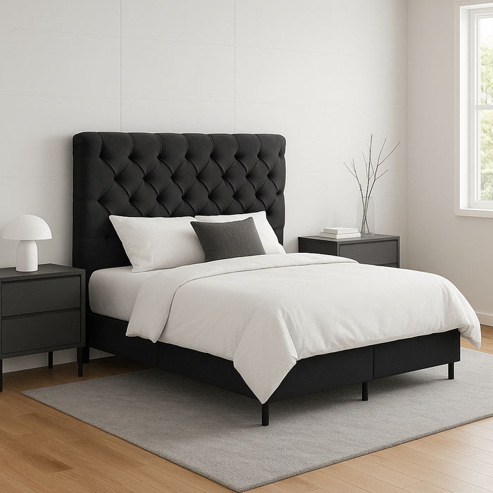 Transforme seu quarto com a elegância e funcionalidade do conjunto Base Bipartida Casal com Cabeceira Preta 138x188 cm. Ideal para quem busca sofisticação e praticidade, este conjunto une estrutura robusta, conforto e design moderno.