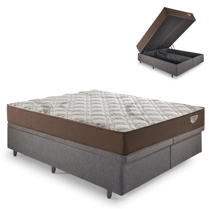 Base Box Baú Bipartido King 193x203 Linho Cinza com Colchão Relax Adorabile Molas Ensacadas
