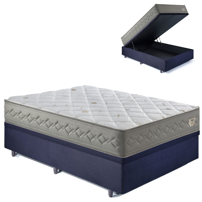 Base Box Baú Casal 138x188 Suede com Colchão New 4 Estações Molas Ensacadas