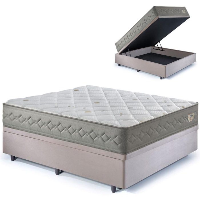 Base Box Baú Casal 138x188 Suede com Colchão New 4 Estações Molas Ensacadas