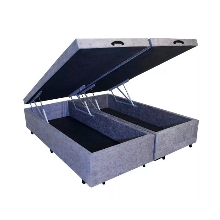 Base Box Baú Casal Bipartido Santo Box Suede Cinza 47x138x188