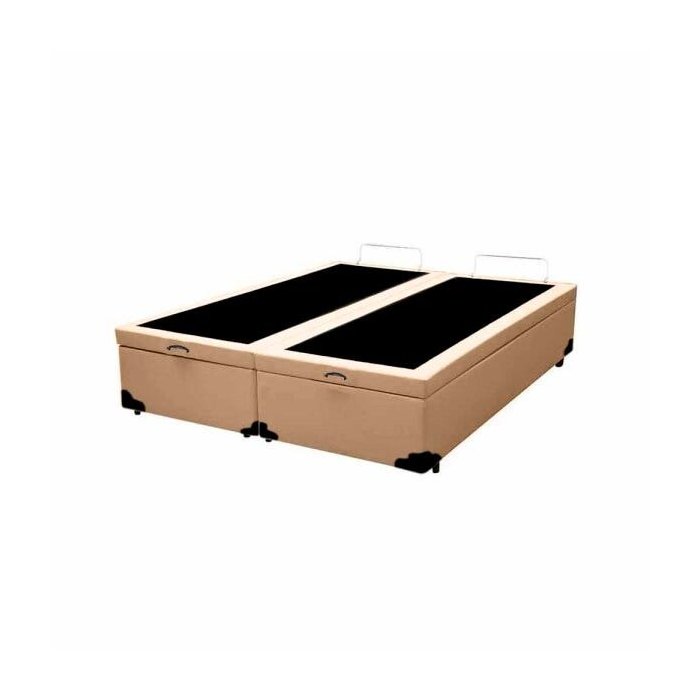 Base Box Baú Casal Blindado Bipartido Acolchoes Sintético Bege 41x138x188