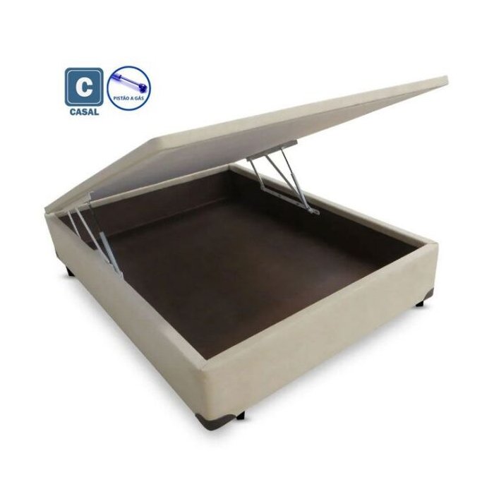 Base Box Baú Casal em Suede Bege com Pistão a Gás - 138x188 bege