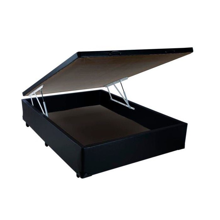 Base Box Baú Casal Khouse Sintético Preto 40x138x188