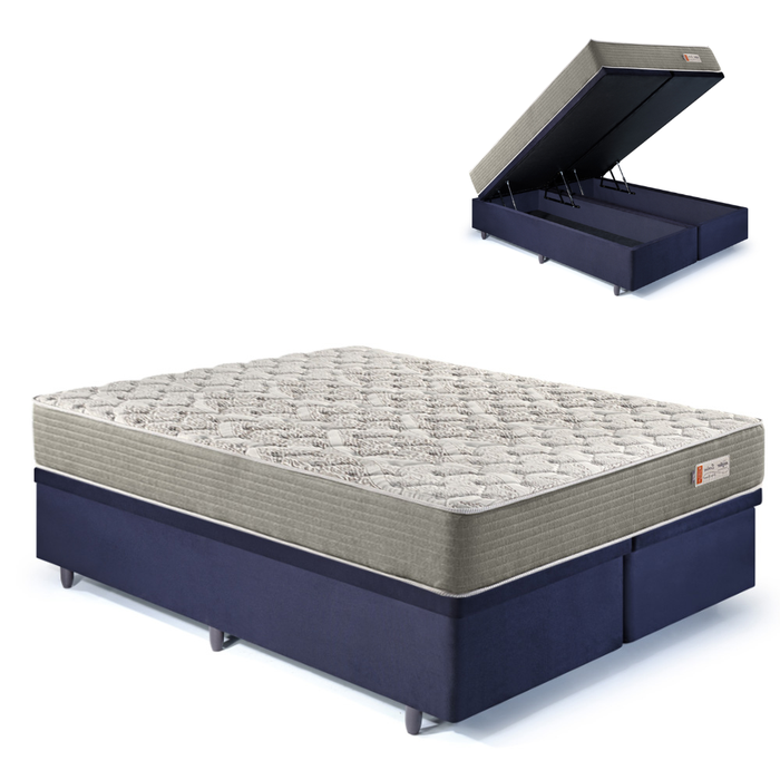 Conjunto Baú King+ Colchão Ecoline D40 Ecoflex King 193x203O colchão Ecoline D40, possui a densidade 40, espuma interna de sua composição 100% maciça, espuma pura. Pode ser utilizado no modo dpuble face, ou seja, pode ser utilizado dos dois lados, aumentando ainda mais a vida útil do seu produto.