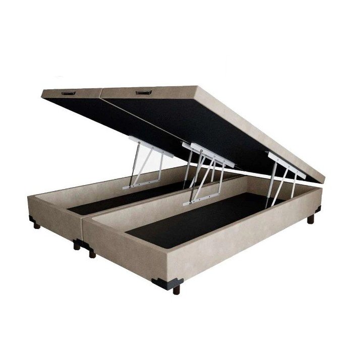 Base Box Baú Queen Bipartido Blindado 158x198 Suede Bege Bio Box Bege