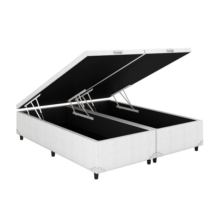 Conteúdo da Embalagem: Base Box com Baú Bipartido, puxador, trava para o colchão, peça que une os dois módulos.