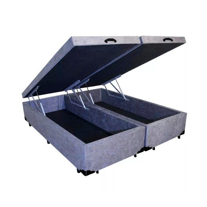 Base Box Baú Queen Bipartido Khouse Suede Cinza 40x158x198