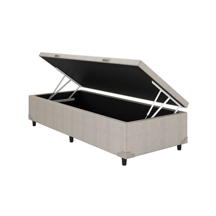 Base Box Baú Solteiro Hiperfort Blindado (78x188x42) Linhão Palha. Ideal para quem busca boas noites de sono e modernidade para o quarto. Feita com madeira reforçada 100% de reflorestamento, acabamento em tecido Linhão, tratamento antialérgico e antiácaro, laterais fechadas.