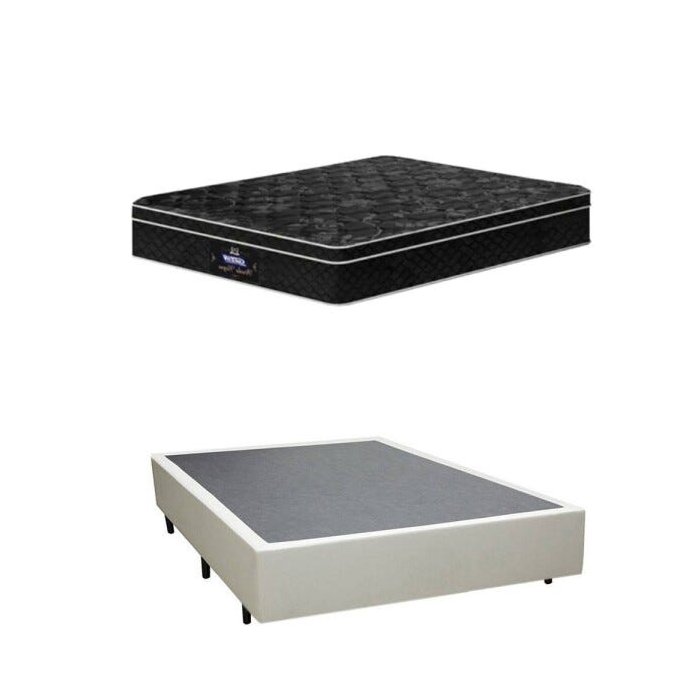 Base Box Casal Sintético Branco 37x138x188 + Colchão Pérola Negra Molas Ensacadas Gazin 32x138x188