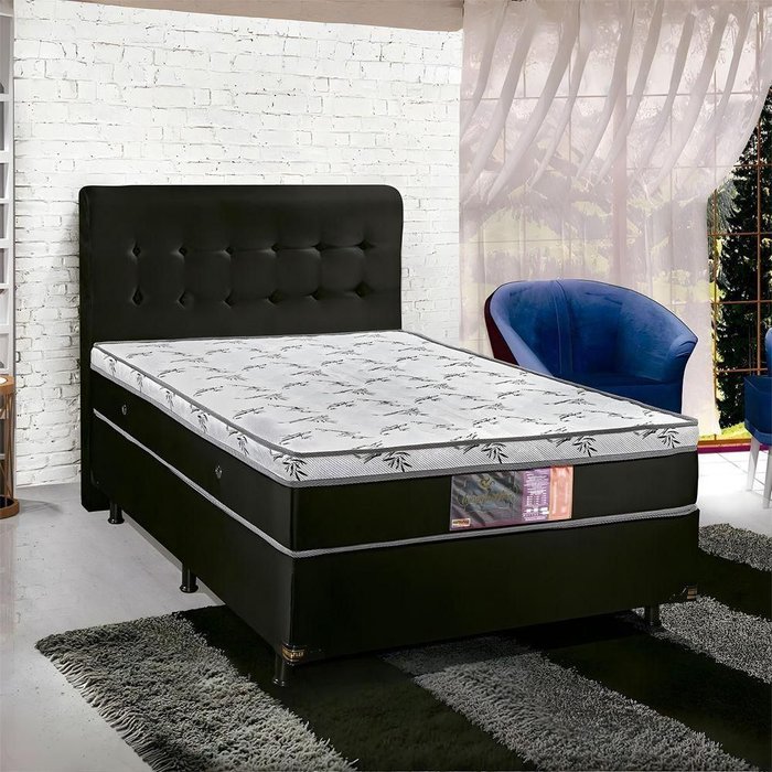 Base E Colchao Queen Confort Molas Ensacadas 1,98 X 1,58 X 0,67 Branco / Preto