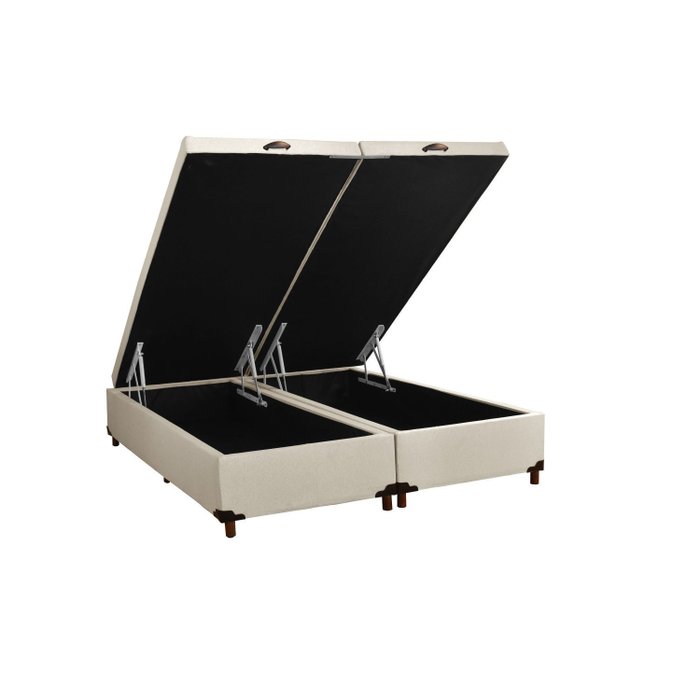 Base Box King Bipartido Baú HR Moveleira 40cmx193cmx203cm Gold Linho Bege
