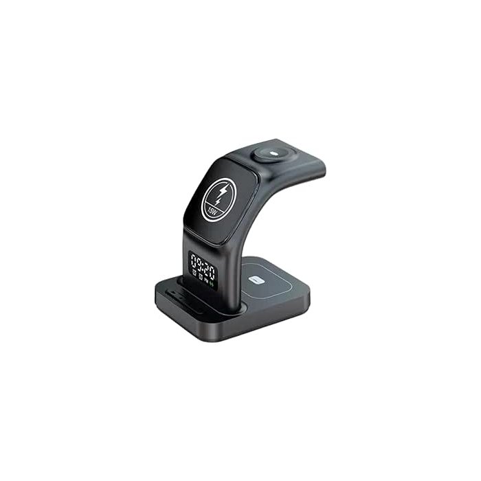 Base Carregador sem Fio 5 em 1 Indução Relógio preto