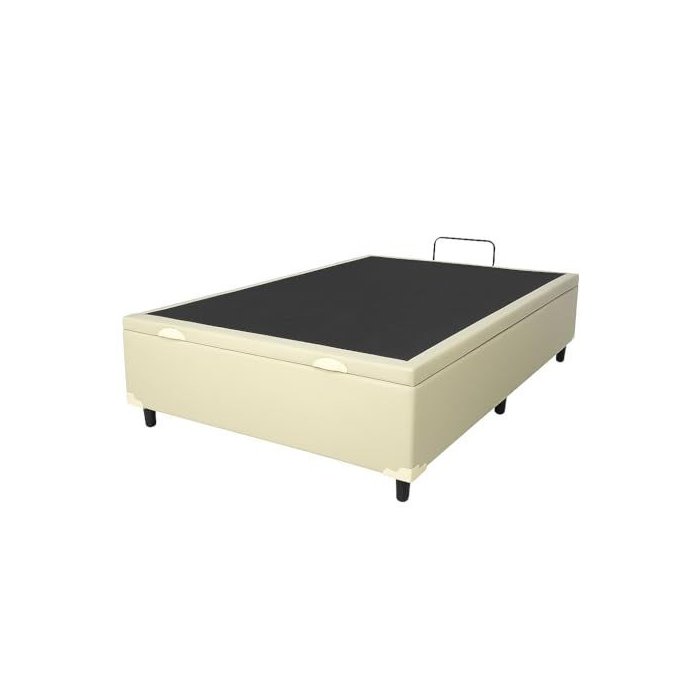 Base de Cama Box com Baú Viuva ou Casal em Corino - Bege - Viúva