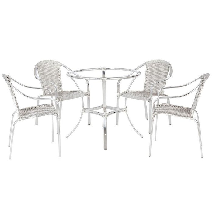 Base De Mesa Com 4 Cadeiras Tóquio Em Aluminio E Fibra Sintetica, Jardim, Varanda, Piscina Marmore