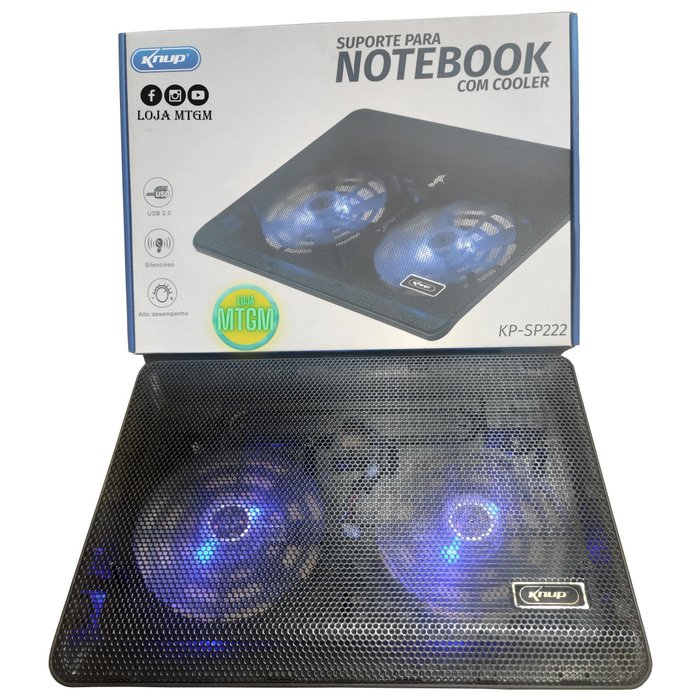 Base Suporte Notebook Portátil com 2 Cooler até 17' Polegadas KNUP KP-SP222