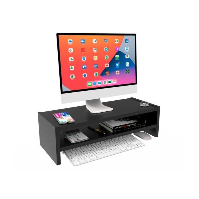 Suporte para monitor elevado com dois níveis, traz praticidade para sua área de trabalho com organização e ergonomia diferenciada, trazendo conforto e proporcionando a posição correta para longas jornadas de trabalho em home office, estudos online ou games.