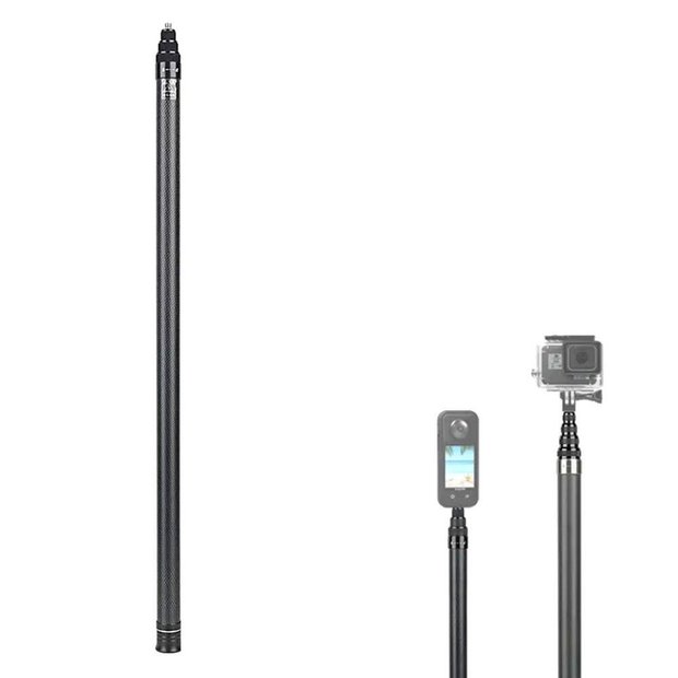 Bastão de Selfie Fibra de Carbono 2.9 Metros para Câmeras de AçãoEleve suas fotos e vídeos a novas alturas com o Bastão de Selfie Telescópico de Fibra de Carbono de 2.9 metros. Este bastão versátil permite ajustar o comprimento de 38,8 cm a uma impressionante extensão de 2.9 metros, proporcionando uma amplitude de opções de captura que o ajudarão a criar imagens deslumbrantes a partir de diferentes ângulos.Desenvolvido para máxima compatibilidade, este bastão de selfie possui um parafuso de 1/4 e um orifício rosqueado de 1/4 em sua parte inferior, tornando-o adequado para uso com câmeras de ação, como a Insta 360 X2/X3, e outros dispositivos equipados com um parafuso de 1/4. Além disso, ele também pode ser facilmente conectado a qualquer tripé com uma porta de 1/4.A base apresenta um design antiderrapante que garante uma pegada confortável e segura para seus dispositivos, evitando quedas indesejadas. Construído com fibra de carbono, este bastão não é apenas incrivelmente leve, mas também resistente e durável, tornando-o o companheiro ideal para todas as suas aventuras fotográficas.Principais vantagens: