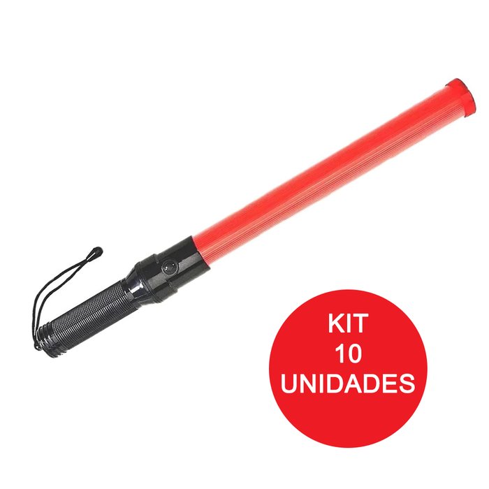 Bastao sinalizador KIT 10 UNIDADES Luz Grande fluorescente lanterna sinal emergencia Transito Manobr vermelho