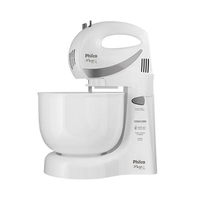 • Suas receitas prediletas prontas muito mais rápido com a eficiência da Batedeira Paris Plus Branca Philco!