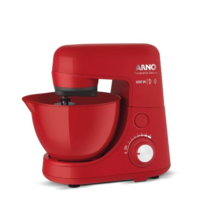 Deluxe conta com 2 batedores: força e versatilidade para massas pesadas e leves e tigela de 4,1L com resistência térmica - pode ser levada diretamente ao freezer ou micro-ondas! Sem dificuldade para misturar de forma homogênea ou bater massas mais densas, a Nova Deluxe possui Movimento Planetário, resultando em misturas uniformes de maneira profissional. Batedeira Arno Nova Deluxe - você imagina, clic, a Arno faz!