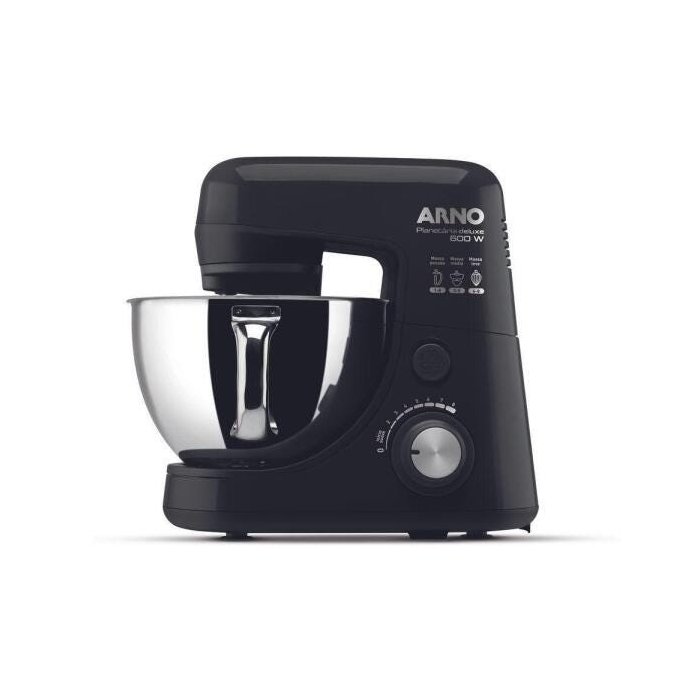 A Arno Planetária Deluxe Inox alia praticidade e eficiência: bate, mistura, amassa e sova a massa rapidamente, deixando-a homogênea, até mesmo a mais pesada. Movimento planetário, que garante perfeita homogeneidade às mais variadas receitas. 600W de potência que garantem rapidez no preparo de receitas leves, e força para a preparação de massas médias e pesadas; é até 2 vezes mais rápida que uma batedeira comum. Tem 8 velocidades, com função início suave (velocidade inicial mais lenta, para evitar respingos).