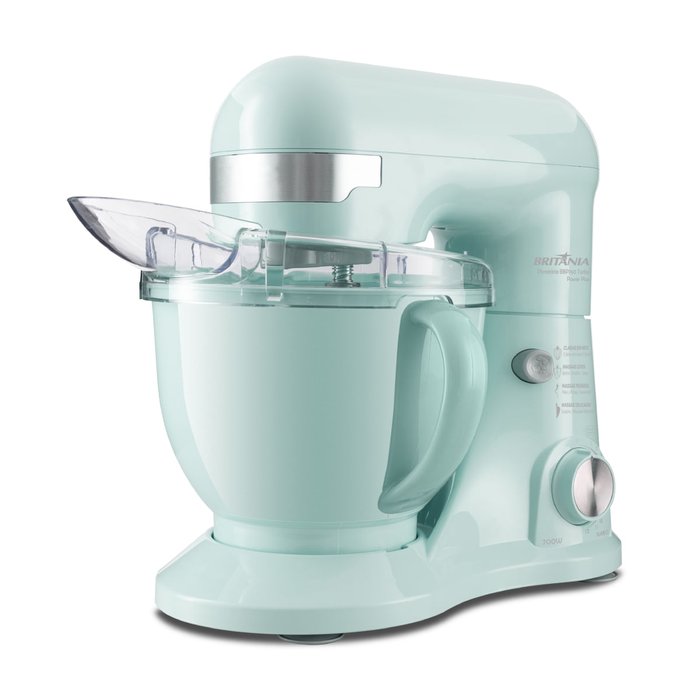 A mais querida das cozinhas, a Batedeira Planetária Britânia BBP760VD Power Plus Turbo ideal para te ajudar, das receitas simples até as mais complexas é com ela que você pode contar! Afinal, são 12 Velocidades Turbo Regule a velocidade ideal para melhor se adequar aos mais variados tipos de receitas e seja qual for que escolher o movimento inicial é suave, ela mistura com cuidado e depois inicia a velocidade escolhida. A potência de 700W garante força. Muita força para garantir misturas perfeitas Grande capacidade para atender ao gosto de toda família, a Tigela plástica tem capacidade para 4,5 litros. e alça para facilitar manuseio. A Tampa antirrespingo garante menos bagunça e permite adicionar ingredientes durante o preparo. Os batedores variados ajudam a diversificar podendo preparar claras em neve, chantili e maionese; massas leves como bolos, pudins, mousses e outros cremes; massas pesadas, ideal para preparar pizzas, panetones, pães doces ou salgados; e acompanha também espátula para melhor mistura. Perfeita para te fazer Chef! • Potência de 700W; • 12 velocidades Turbo; • Tigela de plástico com alça e capacidade de 4,5L; • Possui tampa antirrespingo; • 01 Batedor em aço inox para massas leves; • 01 Batedor em aço inox para massas pesadas; • 01 Batedor para claras em neve; • 01 Batedor Espátula; • Unidade motora fixa; • Botão de articulação; • Base antiderrapante; • Movimento planetário. • Possui partida suave