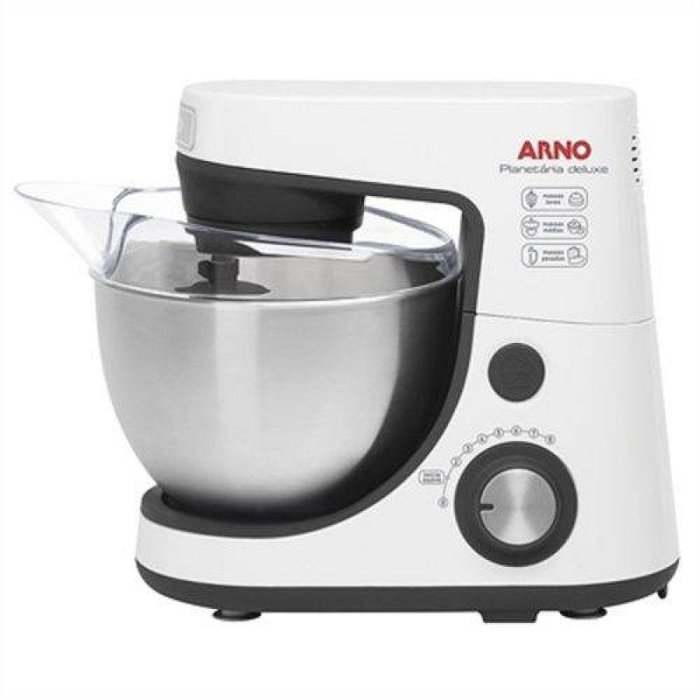 Para quem produz pães e massas pesadas com frequência, a nova Arno Planetária Deluxe é ideal. Além de um design moderno e roupagem contemporânea com detalhes metálicos, a Planetária alia praticidade e eficiência - bate, mistura, amassa e sova a massa rapidamente, deixando-a homogênea, até mesmo a mais pesada. Com 300 W de potência, três tipos de batedores em metal para os diferentes tipos de massa (o globo para incorporar ar, a pá para misturar e o gancho para massas pesadas), além de sistema de oito níveis de velocidade com início suave (velocidade inicial mais lenta, para evitar respingos), capazes de garantir claras em neve até duas vezes mais rápido (Comparado à batedeira Arno Facilita, em testes realizados com 4 claras em julho/2015 por laboratório independente.