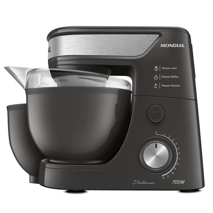 Batedeira Planetária Mondial BP-01P-PI Grafite e Inox 4,5L 127VA Batedeira Planetária Mondial Premium BP-01P-PI é a escolha perfeita para quem busca unir eficiência, praticidade e sofisticação na cozinha. Com alto desempenho e recursos exclusivos, ela facilita o preparo de receitas incríveis, desde bolos fofinhos até massas de pão mais densas. Movimento Planetário: Misturas homogêneas e maior volume garantidos pelo movimento planetário, ideal para massas leves, médias e pesadas. Potência de 700W: Com robustez e eficiência, a batedeira garante o preparo de uma variedade de receitas, desde claras em neve até massas pesada. 3 Tipos de Batedores: Inclui batedores específicos para diferentes tipos de massas, permitindo maior versatilidade no preparo. Design Sofisticado: