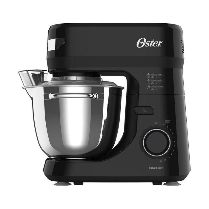 A batedeira Planetária Oster OBAT641 conta com potência de 850W, 12 velocidades com partidas suaves. Possui base estável com ventosas de alta sucção na base. Conta com design moderno com acabamento em inox. Para melhor aproveitamento de toda massa e evitar sujeira durante os preparos, conta com tampa antirrespingos, uma borracha de vedação reduz a trepidação entre tampa e bowl.