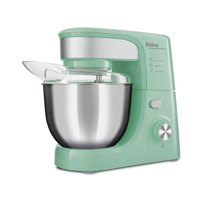 •Eficiência, potência e design charmoso você tem com a Batedeira Planetária Philco PHP500 Turbo Inox Green 500W!