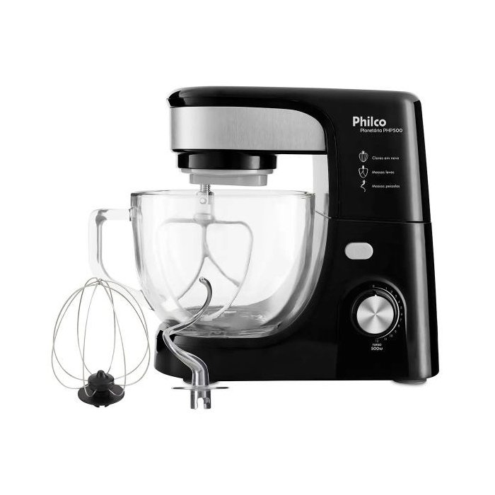 Batedeira Planetária PHP500 Turbo Glass 220V Preta com tigela vidro